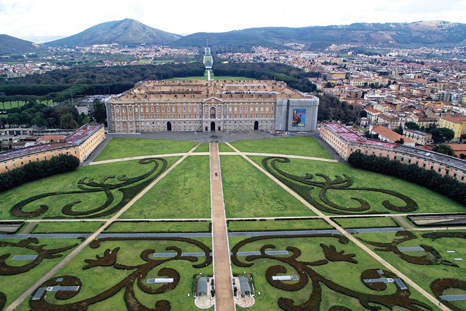 La Reggia di Caserta fu realizzata a partire dal 1752 da Luigi Vanvitelli per volere di Carlo di Borbone con lo scopo di erigerla quale fulcro del nuovo regno di Napoli.